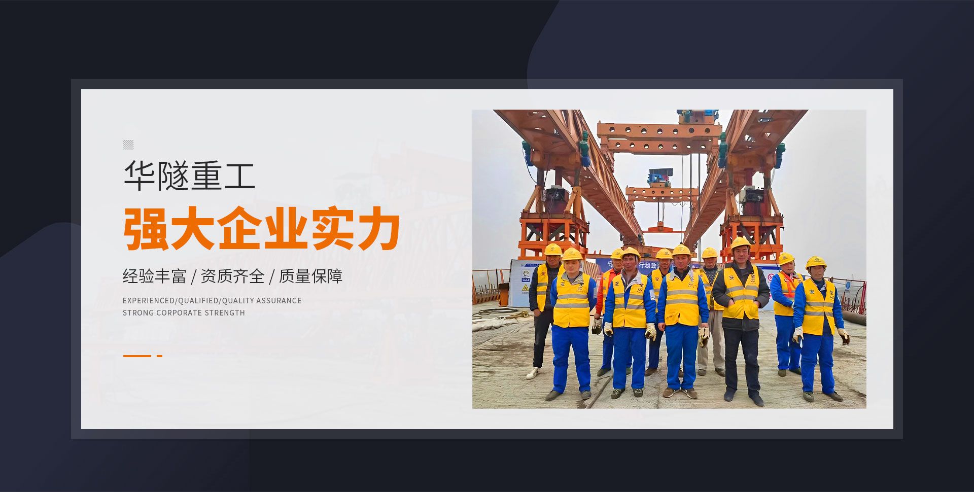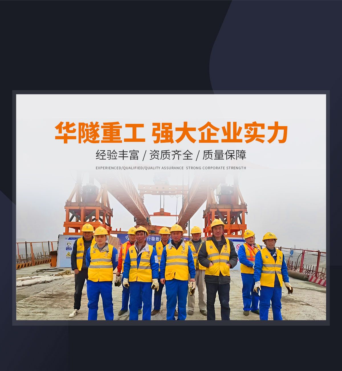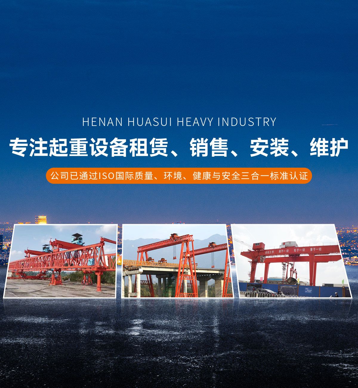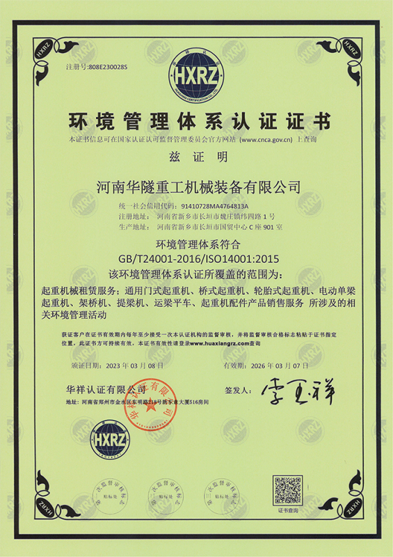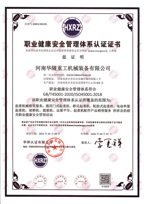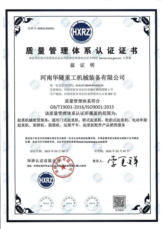 河南華隧重工機械裝備有限公司主要從事通用門式起重機、橋式起重機、電動單梁起重機,輪胎式起重機、架橋機、提梁機、遠梁平車、鋼絲繩電動萌蘆、卷揚機、起重配件制造、銷售:起重機械租賃、安裝和維修,起重設備園收,機械設備維修,鋼結構工程承包,橋梁工程及技術咨淘服務,銷售五金制品、機電設備:建設工程監理,建設工程設計,各類工程建設活動,建筑勞務分包,建筑物折除作業,施工作業,工程管理服務,土石方工程施工,裝如發運?! 」疽淹ㄟ^IS0國際質量、環境、健康與安全三合一標準認證,特種設備制造許可證和特種設備安裝改造維修許可證。擁有完熟的質量管理體系。嚴格的管理制度,強大的生產能力和先進的檢測手段,在保證產品質量的同時,也具備了極強的市場競爭力?! 」緢猿挚萍紕撔聻槔砟?,產品質量為核心,注重信譽,建立了減信可靠、快捷、思速。便利周到的售后服務網絡。  我們擁有的技術專家和技術服務隊伍為客戶提供充善的售前技術支持和全天候的售后服務體系,讓您無后顧之憂,享受一站式的超值服務。  “華隧重工,伴您成功“是華隧重工永遠的宗指,真被的希望與各界朋友攜手并進。共創輝準!